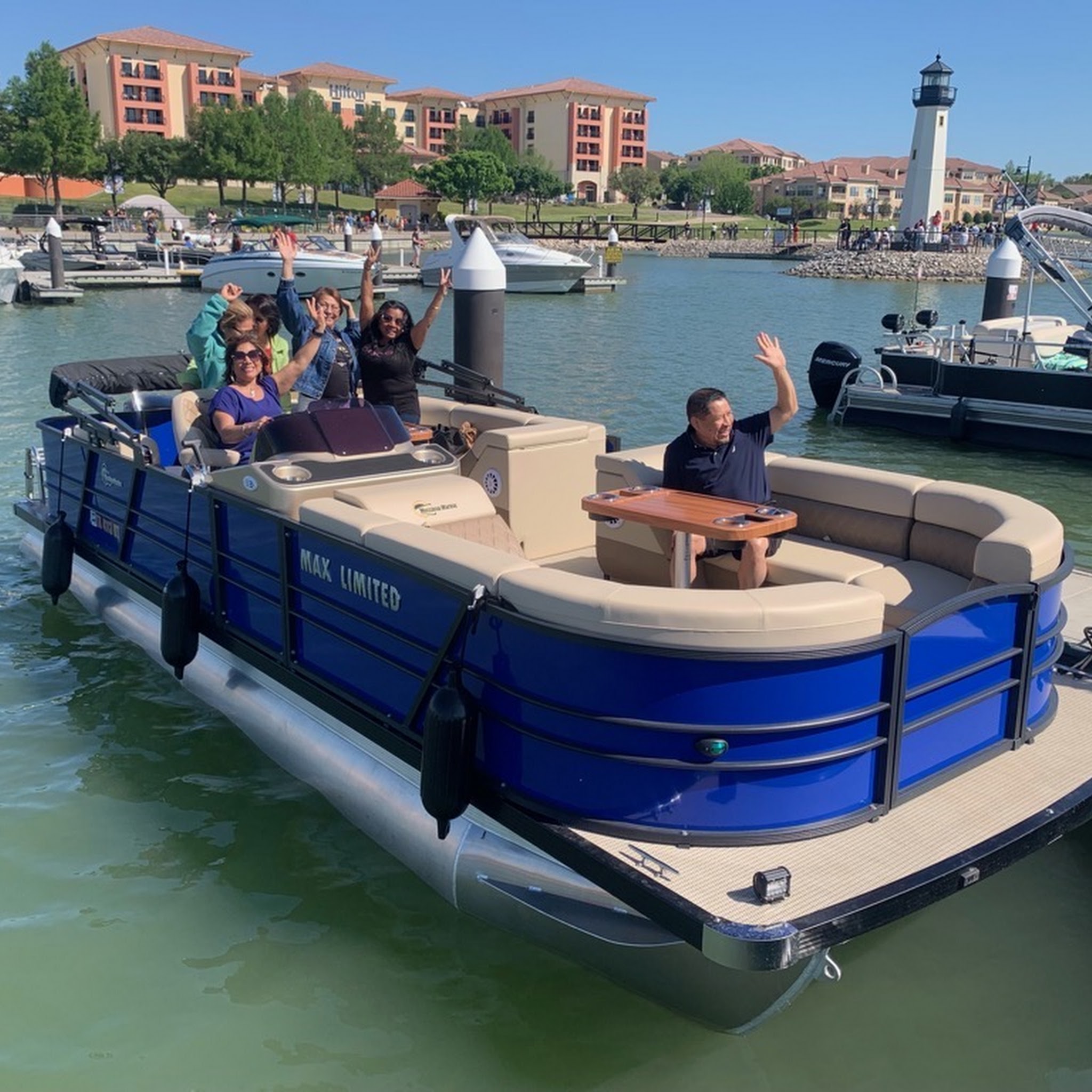 THE BLUE LIGHT SPECIAL'' 2023 Pontoon Boat. 12 seater / 24ft This boat can accommodate up to 12 people with plenty of room on deck. It’s powered by a 150 hp Mercury engine. It comes equipped with life jackets, adult and children sizes are available. It also has color-changing LED lights., a fish finder, and GPS. No pets, no smoking, no fishing ,and no swimming. Drinking is allowed with the exception of red wine. This boat is extremely nice and we have it cleaned and sanitized after each use. So what are you waiting on? Let’s get booked. Boat in located on Lake Ray Hubbard