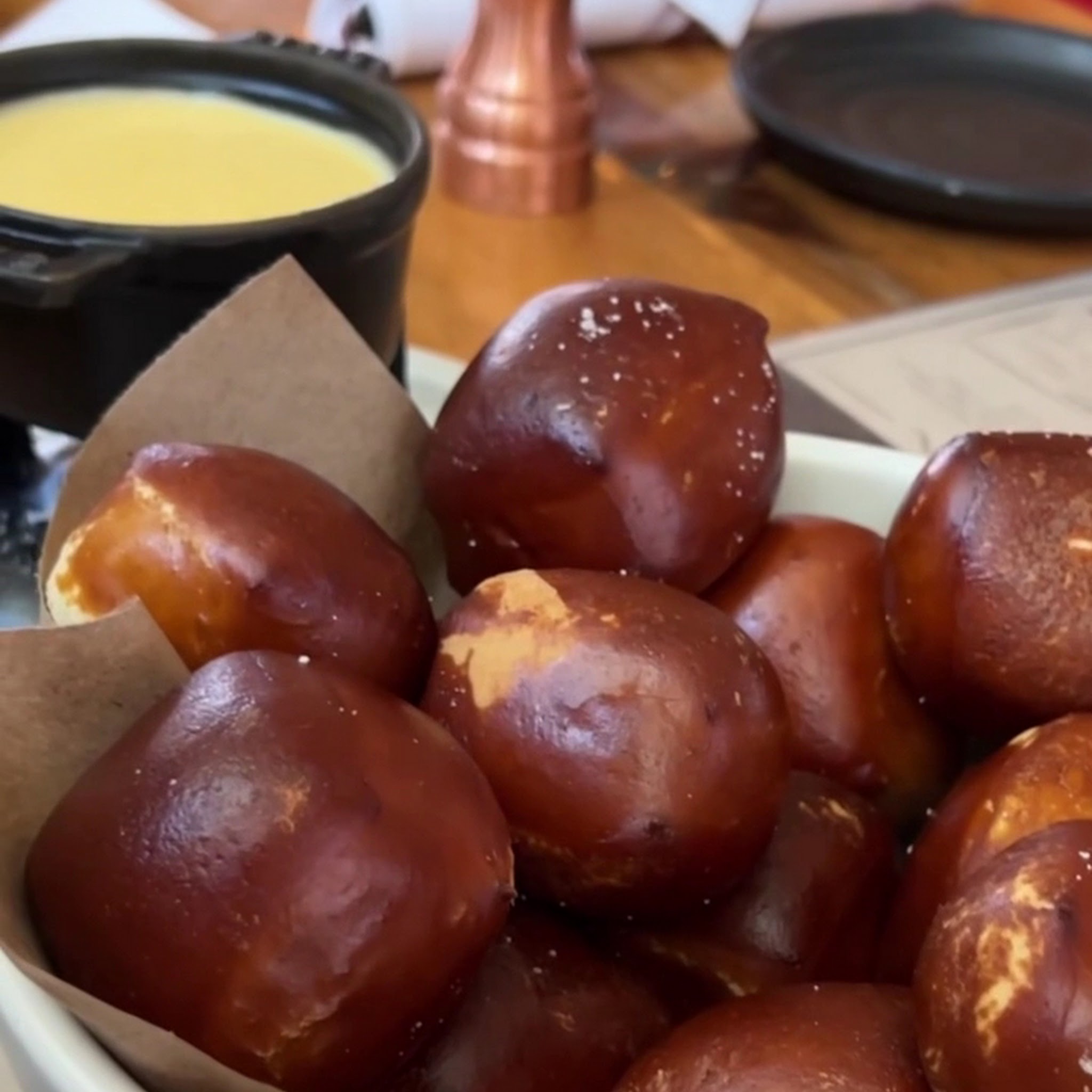 Very fun atmosphere. There is a covered patio area with games like corn hole.The food is good. We really enjoyed dipping the pretzel bites in melted cheese.I recommend the salmon dish. … More