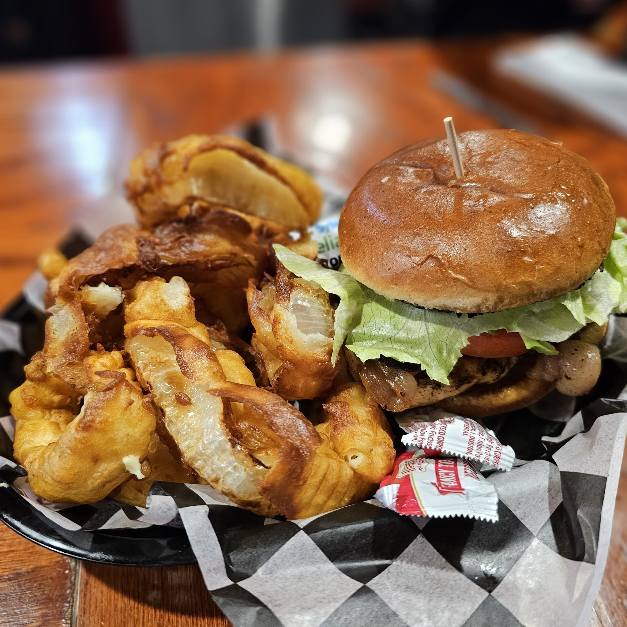 Got a 1/4 lb cheeseburger with everything on it and onion rings. Very fresh and great tasting. The sauce for the onion rings was amazing. … More