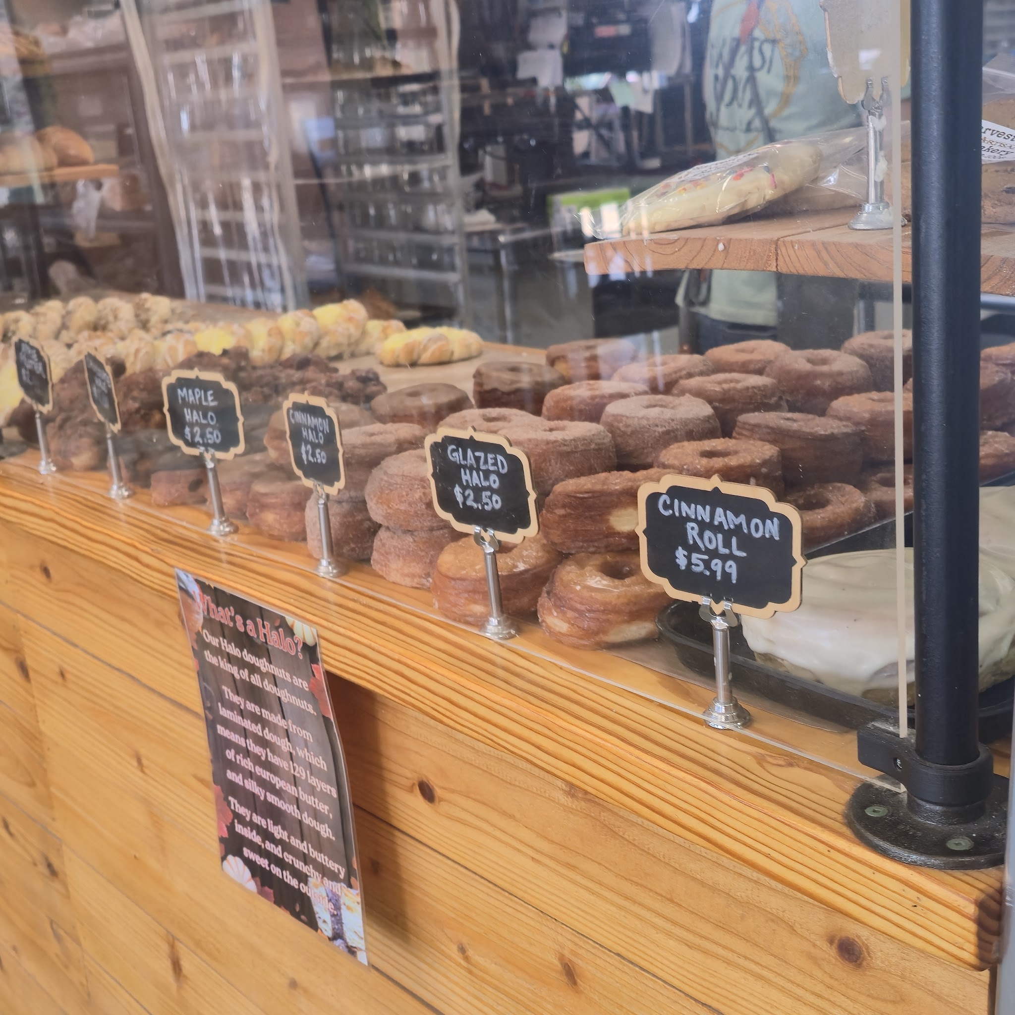 I have loved everything I've tried at Harvest Moon, and after three years of eating their delicious baked goods, I'm going to miss being able to grab one of the amazing halo doughnuts or a croissant. I haven't tried everything they offer yet, but based on the things I have tried, there's no doubt in my mind that everything else is just as amazing.The service is absolutely wonderful as well! Everyone I've interacted with there has greeted me with a smile, and they are all always so kind. 100/5 stars 🌟Food: 5/5 | Service: 5/5 | Atmosphere: 5/5Recommended dishesBakery, Donuts, Cinnamon Roll, Butter Croissants, Sourdough Boule, Lemon Tart, Raspberry Cream Cheese Danish, Halo Doughnuts, Danish, Lama Cookie, Almond Croissants, Chocolate Croissant, Raspberry Danish