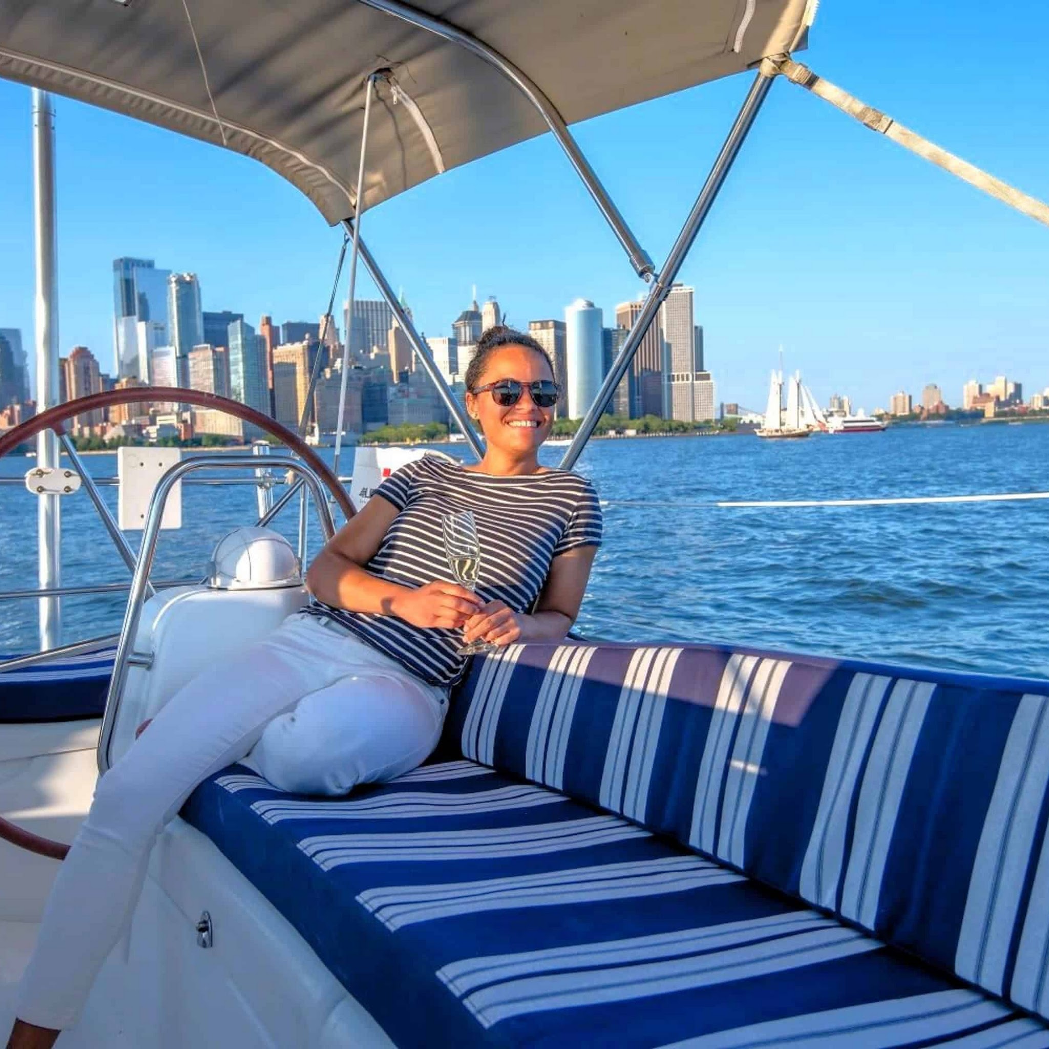 Private sailboat charter NYC departing Chelsea Piers, Manhattan. Exclusive vessel accommodating six guests maximum, USCG-licensed captain at the helm and included. Since 2018, providing premium sailing experiences for marriage proposals, birthdays, anniversaries, bachelor/bachelorette parties, co...