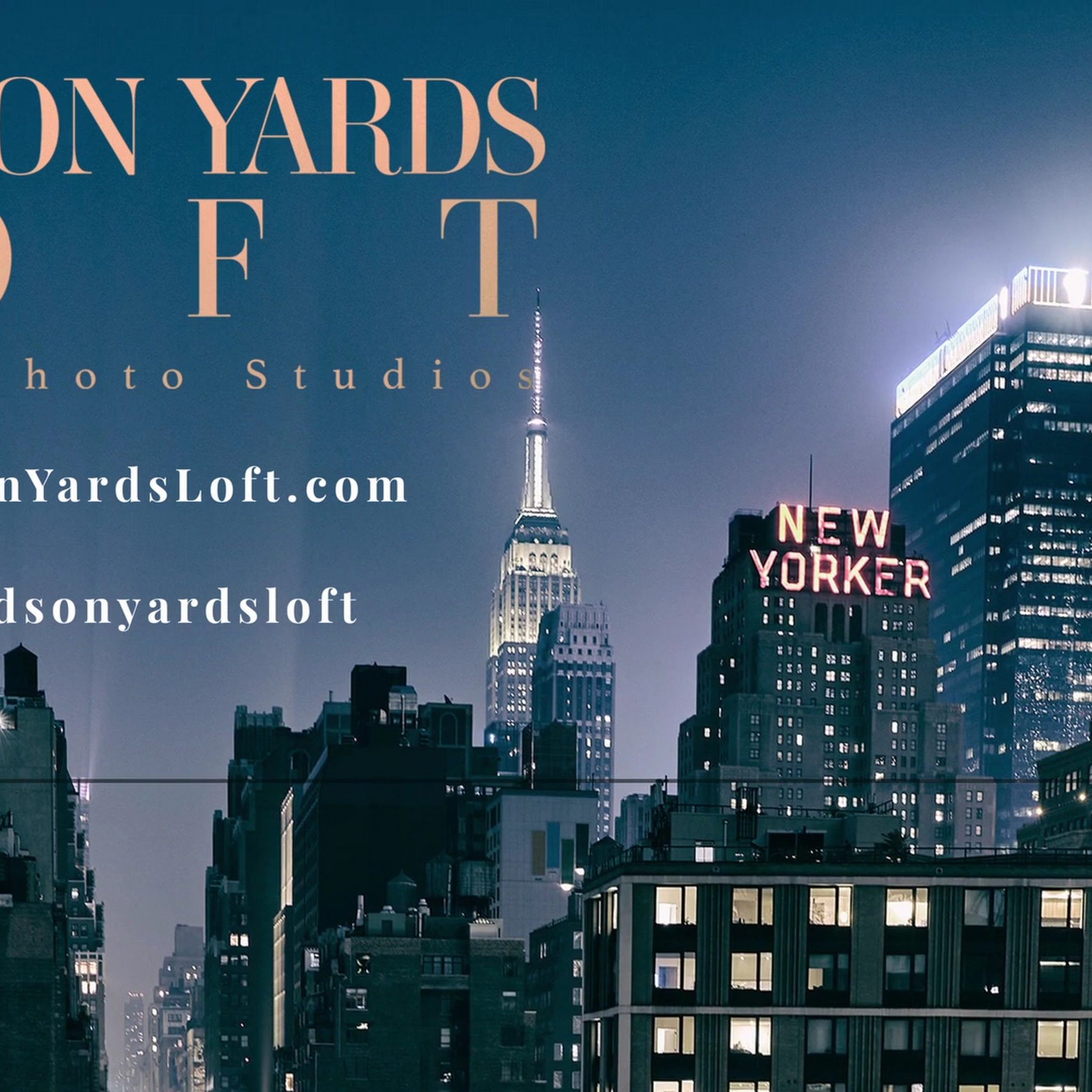 HUDSON YARDS LOFT FILM & PHOTO STUDIOS, Located in the heart of New York City's Hudson Yards neighborhood. We have 4 amazing 2300 sq.ft. Studios and an Amazing Rooftop that's great for any Film or Photography production. We also offer In-House Still & Video Lighting Equipment Rental. Highlights: 4 Gorgeous 2200 Sq. Ft. Lofts ONE Stunning Rooftop with THE Iconic NYC Skyline. South light from morning to dusk. 11' Ceiling Height Large Still Photography and Video / Cinema Equipment List for all of your Production needs. 10' x 20' Freight Elevator that opens directly into the Loft Near Public Transportation & Parking Facilities