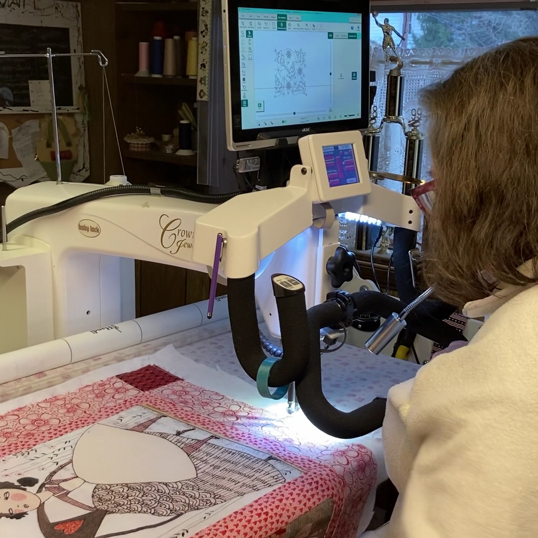 We provide both free-motion and computerized long-arm quilting to sandwich the pieces together and finish your quilt. Drop-off or ship us your completed quilt top and backing and we will use our longarm quilting machine to stitch it all together for you.