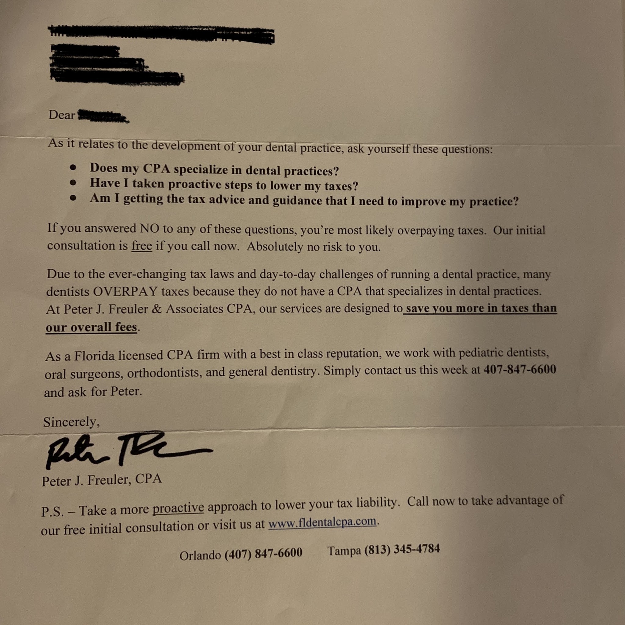 ⭐️⭐️⭐️⭐️⭐️Peter Freuler is beyond amazing! I’m glad he never stopped sending me his business letter (attached) since one day I knew I was going to need him. From the first moment I interacted with him during the consultation, I could see the vast knowledge and expertise he has when it comes to any kind of business. He has been super helpful clarifying all my concerns and most importantly you can see he has your best interests in mind. Thank you Peter for being patient and approachable as I asked all my questions. I highly highly recommend him and his team for all your business accounting needs!