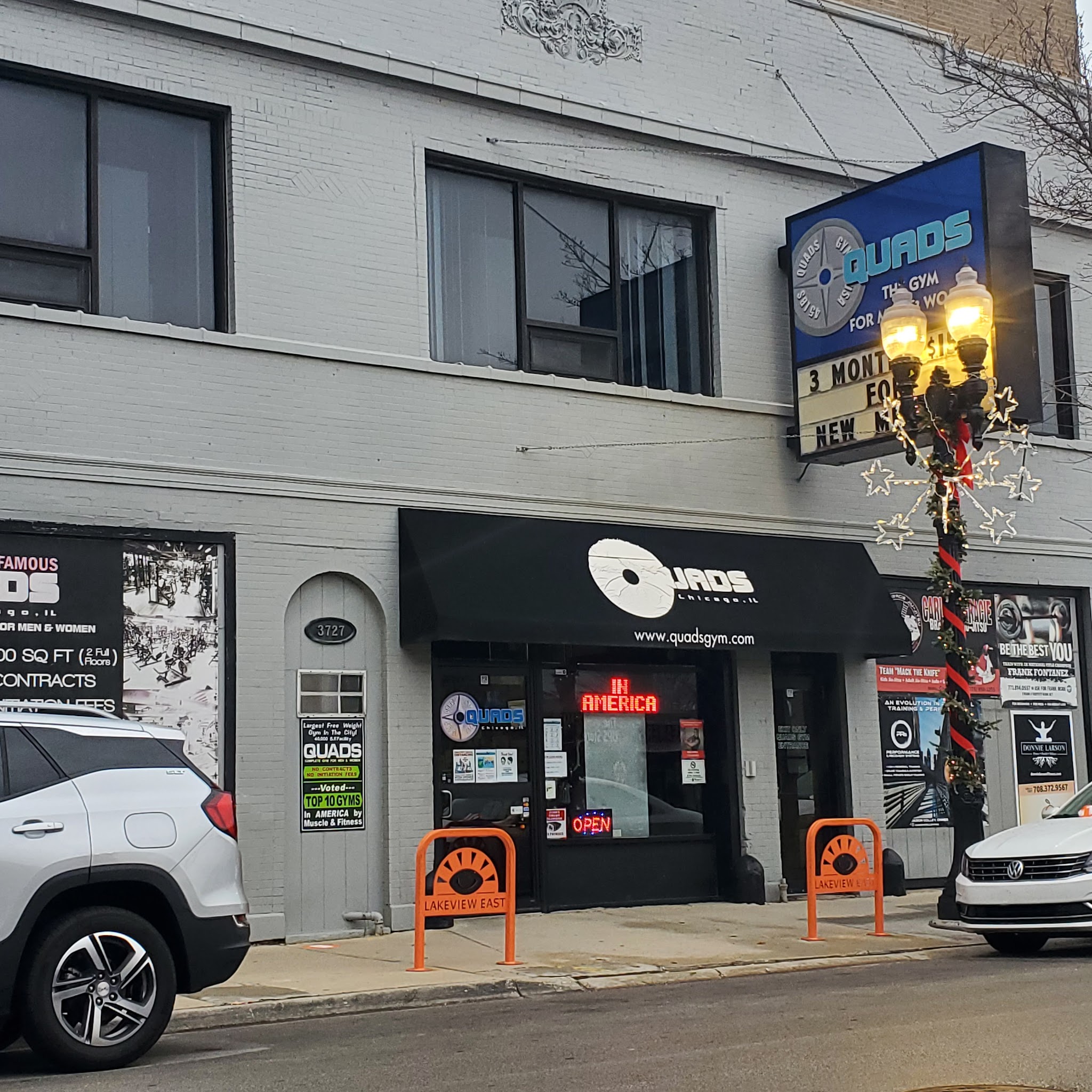 40,000 square feet spanning 2 floors, with more than 280 pieces of equipment for general weight training, bodybuilding, & powerlifting. 58 cardio pieces: stair-masters, ellipticals, treadmills, rowers, Jacob’s ladder, VersaClimber, climbing wall, new Torque MX Sled, stationary bikes, farmers walk machine, etc. Large stretching/free space in back on the 1st floor & a small boxing room on the 3rd floor. Posing room. Welcoming, encouraging atmosphere. 16 personal trainers. Quads Gym was created in by lifelong best friends Dave De Young & Tom Milanovich in Dolton, Illinois in 1975, and they incorporated their business on 5/1/1976.