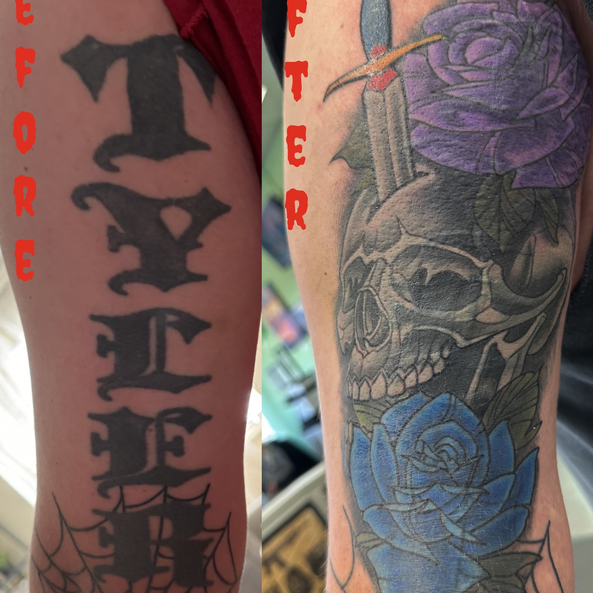 If you are looking for a great tattoo shop, RIVER VALLEY TATTOO, hands down! Both artists are wonderful. Brian did my tattoo. He DID NOT do the black part, that’s is what I brought to him. He made a bad cover up look amazing! I strongly recommend you go there first. You will not regret it.ServicesTattoo cover-ups & reworkings