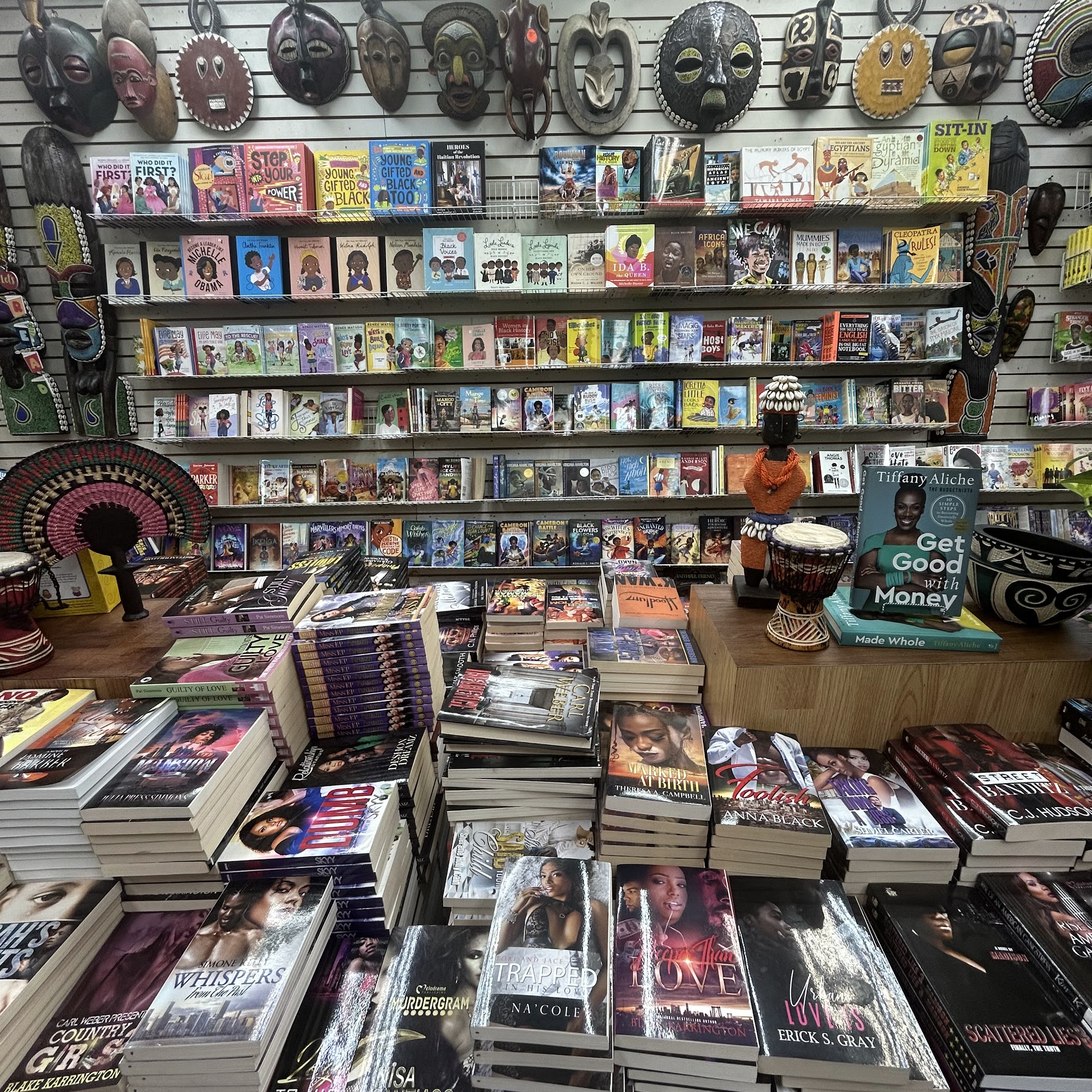 Great selection of books, especially for children. The people who work there are friendly and helpful. They also have framed prints, African masks, sculptures, and clothing. There is a friendly gentleman selling jewelry near the entrance. I will definitely return to purchase gifts.