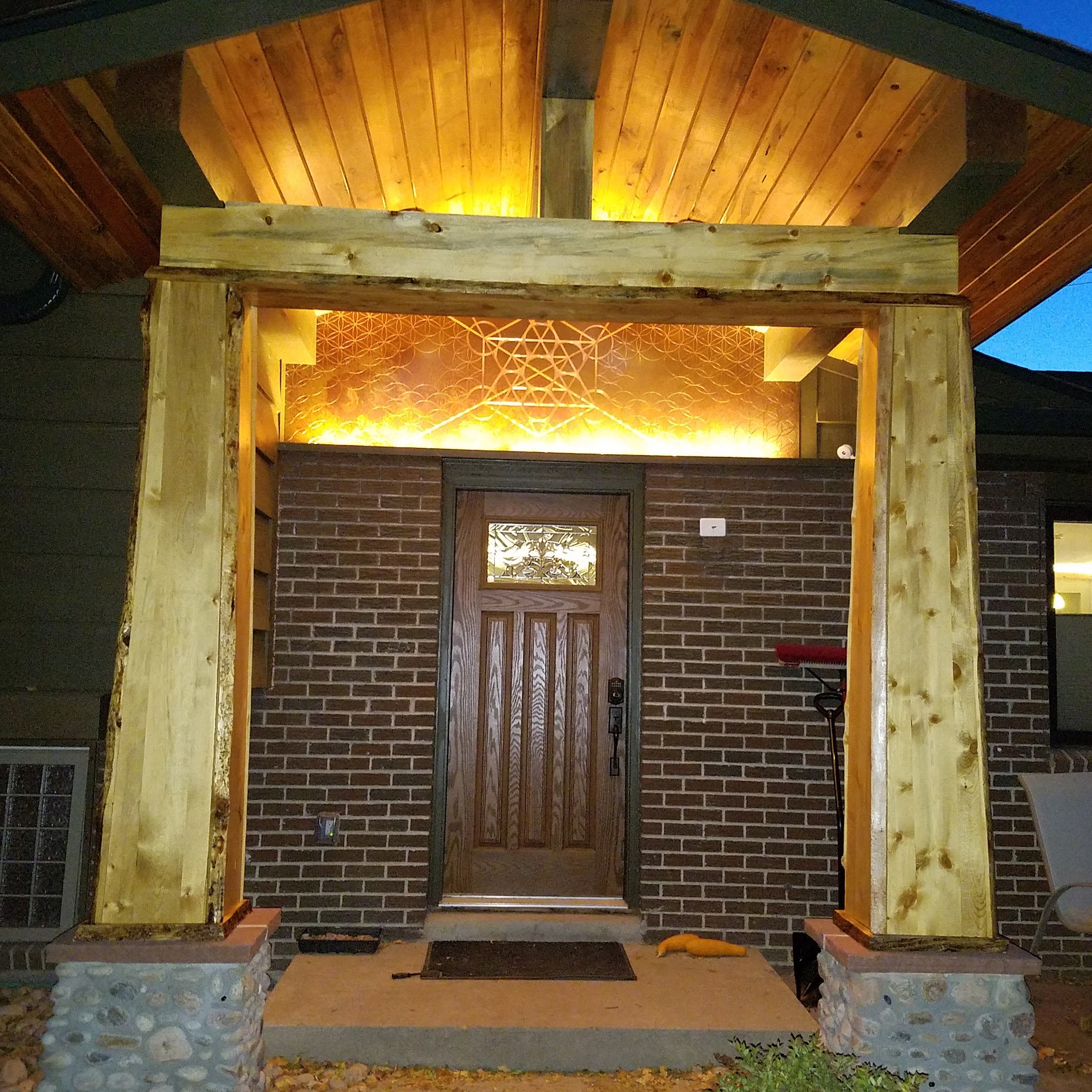 When we added a roof covering over our entry porch we had a chance to add artwork over the door. What Stacey produced and our copper artist did is amazing! Thank you, Stacey, regularly we get compliments on it!