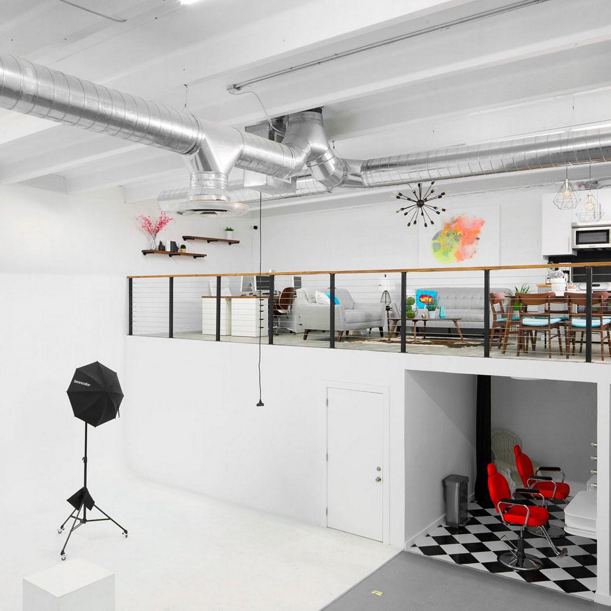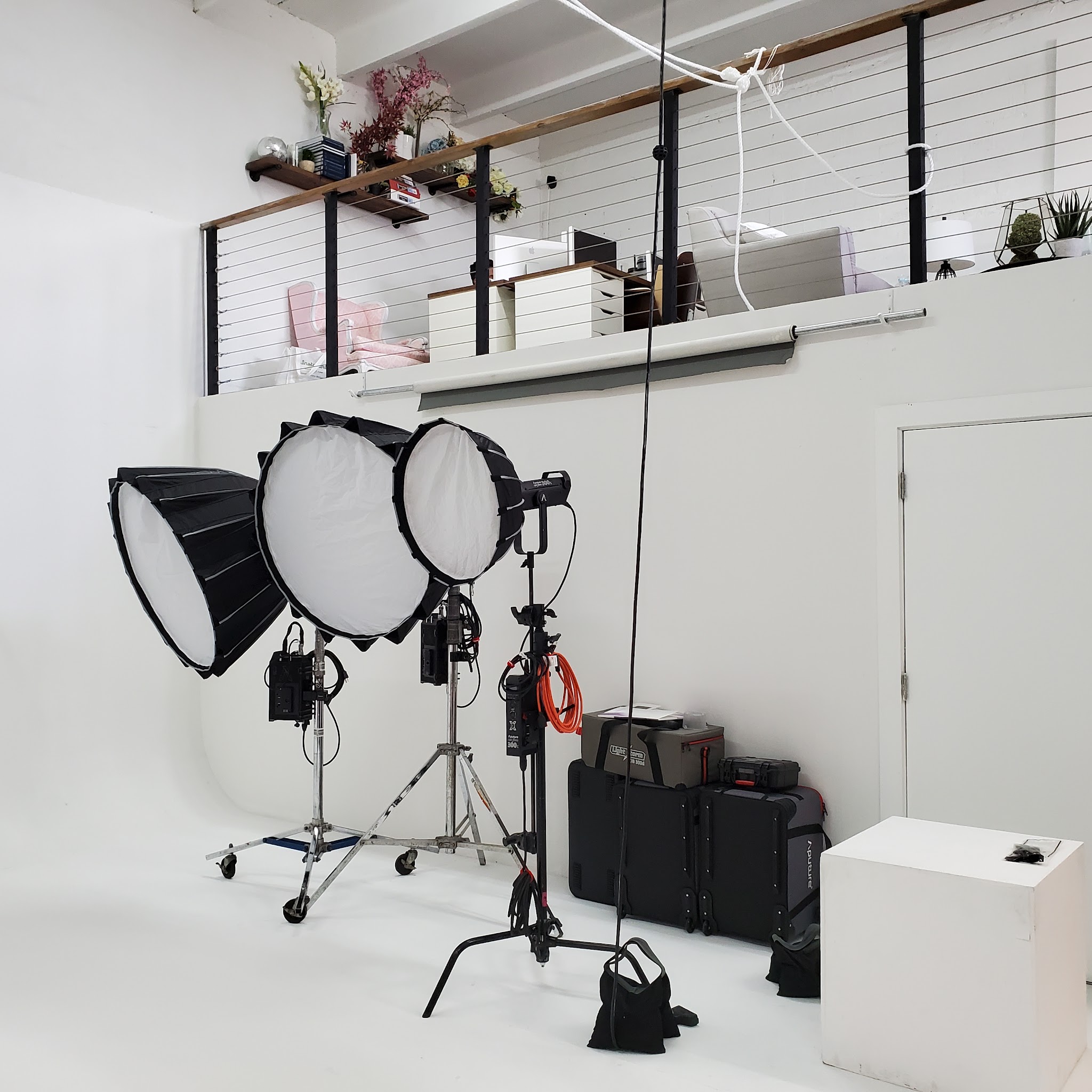 Great studio with second floor viewing area and great white space for your shoot!
